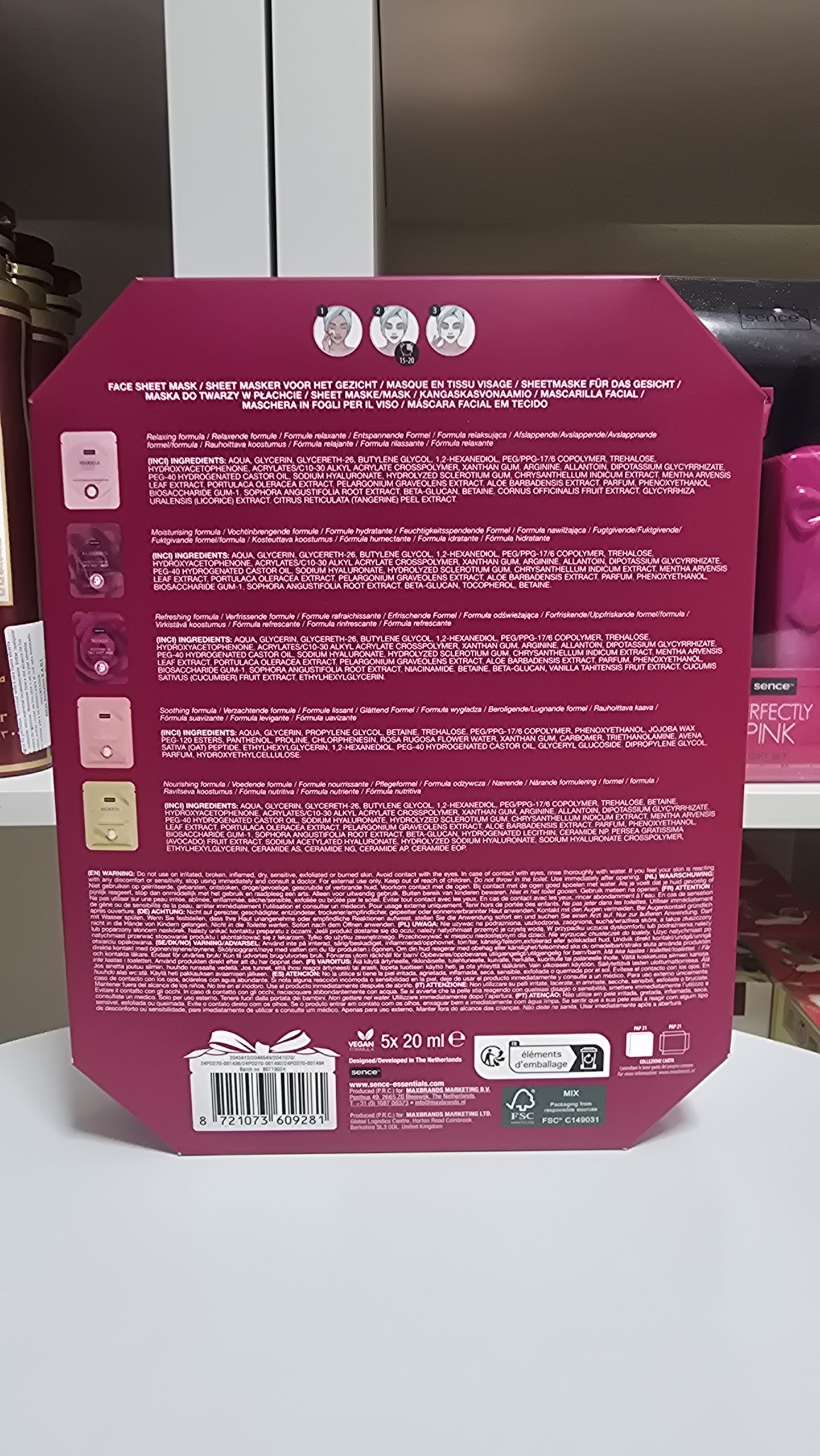 conjunto de mascarillas faciales 1 sparkle 2 elegance 3 bloom 4 blush 5 secrets ideal para mimar tu piel,cada mascarilla contiene beneficiosas propiedades para cuidar tu rostro,cada una de ellas con una formula unica